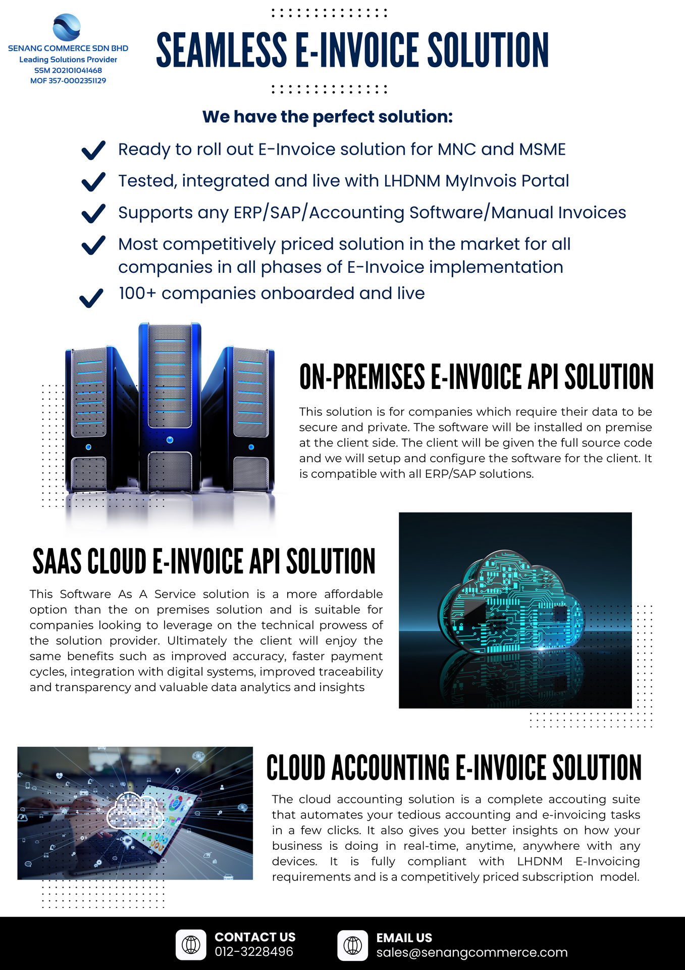 Senang Commerce is able to provide various eInvoicing solutions for business. As LHDNM has set a target deadline for the implementation of eInvoicing, we are ready to assist your business in getting prepared.