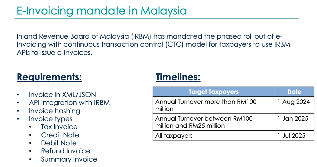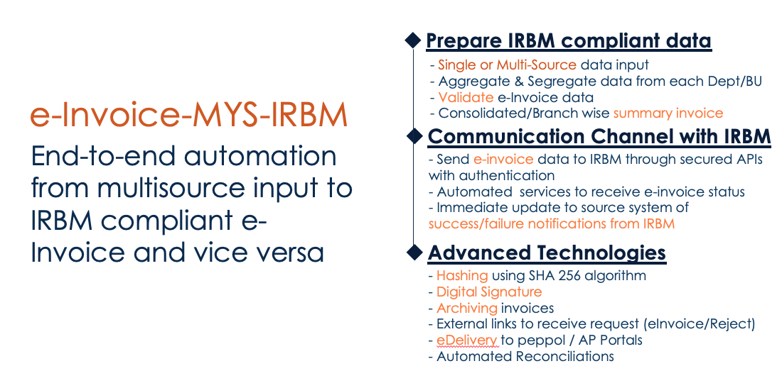 Our range of business solutions including API eInvoicing solution, FTP eInvoicing solution as well as manual eInvoicing solutions. We are also able to assist in the integration of eInvoicing into the F&B POS System, Human Resource Management System, Time Management System, Payroll System and Accounting System.